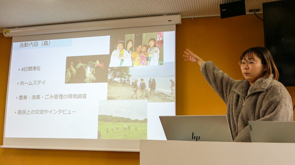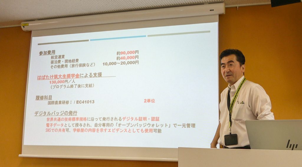 本学ステューデントサポートセンター主催の「留学フェア」の一環として、多文化共修ガイダンスを実施しました。ソーシャルインパクト創出支援事業の活動の概要、オープンバッジについての説明の後、野村名可男 多文化共修タスクフォースリーダーより実際のタイでの事例紹介や費用についてのお話がありました。続く「参加学生の声」セッションでは、インド工科大学とのGASSHUKUに参加した医学医療系の神保さんと、フィリピンのセントラルルソン州立大学を舞台に東南アジアの複数の国からの学生たちと共にRidge to Reefに参加したヒューマンバイオロジープログラムの細見さんが実際の共修活動の様子や、共修活動を通して学んだことについて発表しました。専門分野や言語の壁を越えて外国人学生との課題解決型学習(PBL)を実践を通して、学生たちの視野の広がりがよく伝わる発表でした。