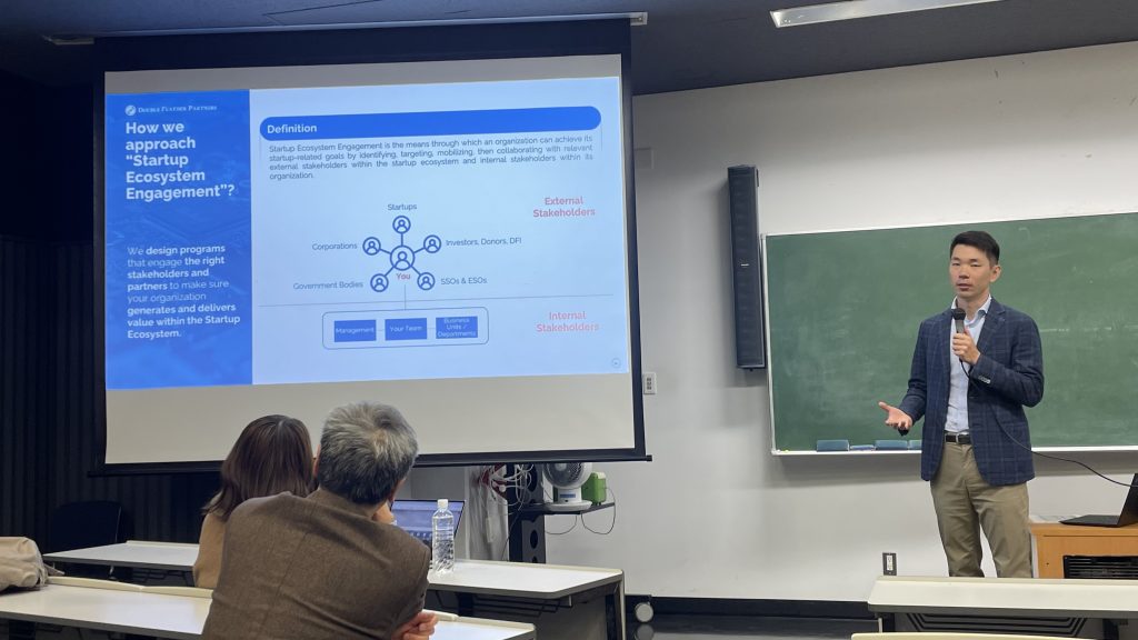 Social Impact Promotion Office, in collaboration with Bureau of Human Empowerment(BHE), held a Global Start-upper Seminar and a special lecture featuring journalists from NHK (Japan Broadcasting Cooperation) as part of the undergraduate foundational course for Career Design Introductory Course. This course invites distinguished alumni active in various fields to speak as guest lecturers, offering students an opportunity to learn about career development through real-life experiences.