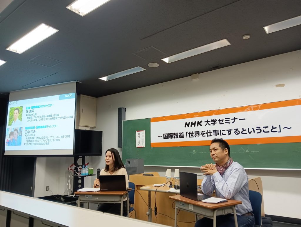 Two professionals from NHK joined as guest speakers, discussing frontline international reporting and insights into media production: