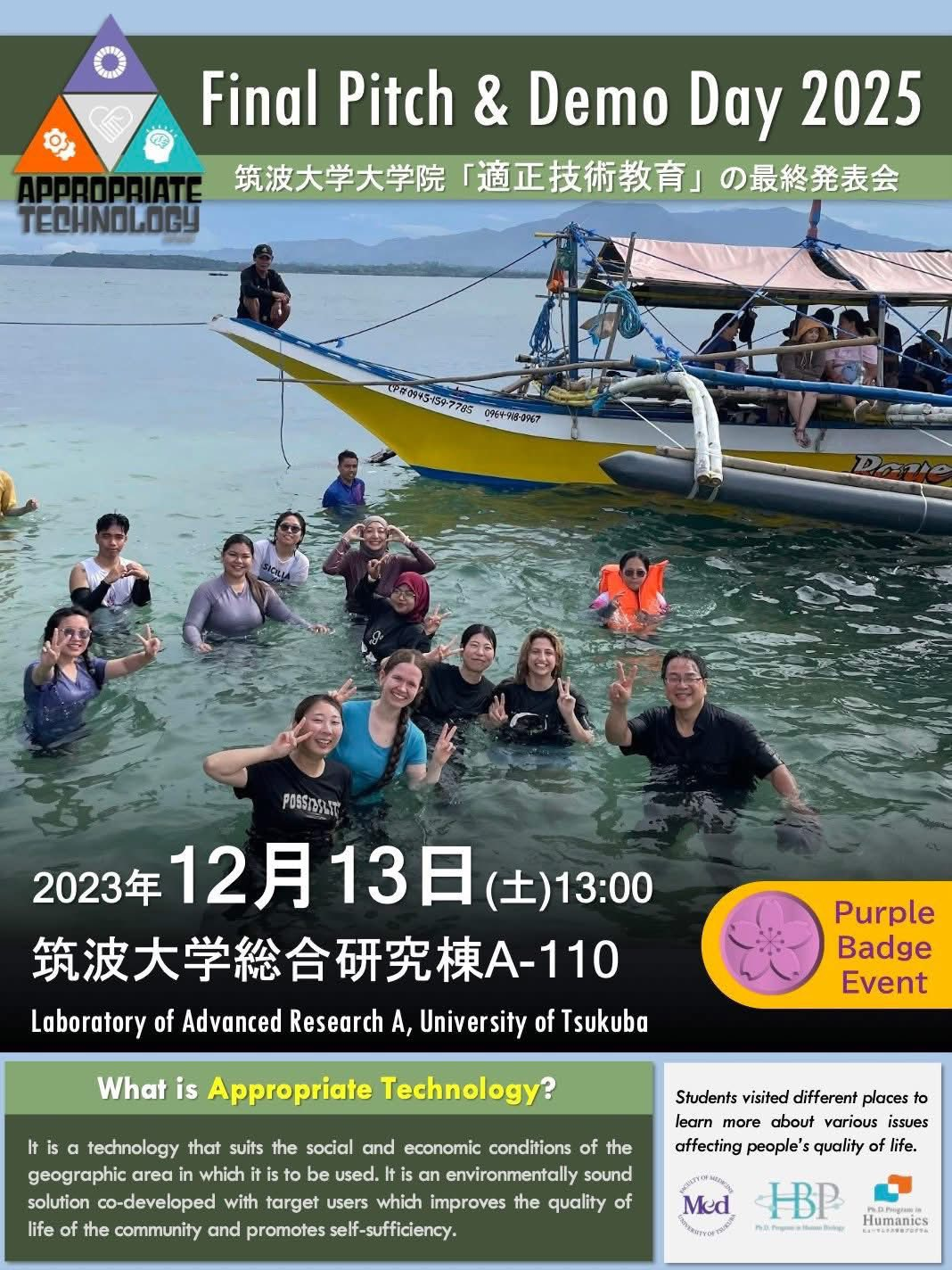 We are thrilled to invite you to the Appropriate Technology Final Pitch and Demo Day 2025! Outputs from SI Projects in Daigo Town and Philippines will be featured in this session. Since its inception in 2012, the Appropriate Technology (AppTech) course has challenged students to think creatively and compassionately to solve real-world problems. This year, we are bringing together generations of AppTech participants for a special afternoon of presentations, prototypes, and connection.