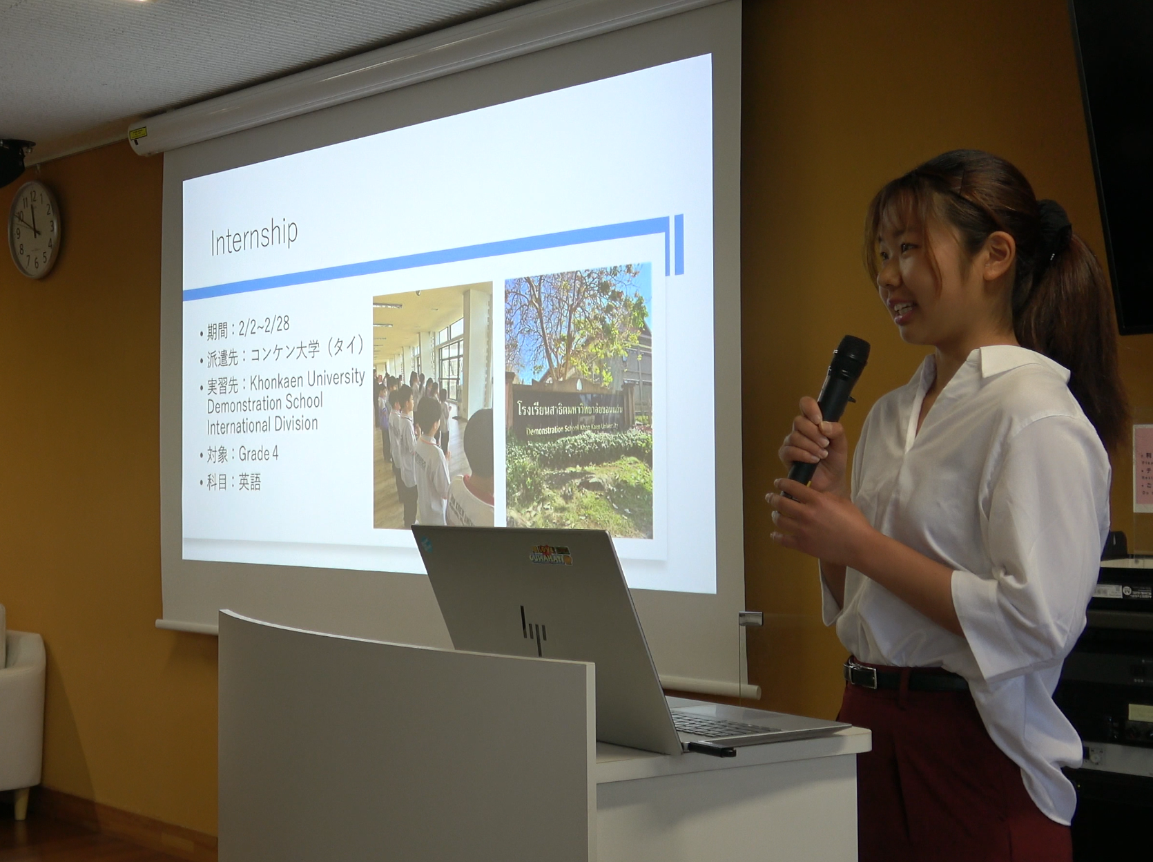 The session also featured a student sharing segment. One student shared their experience in the SEA Teacher Program in Thailand, where they engaged in international internship teaching in local schools. Another student presented their participation in three multicultural co-learning activities conducted in Taiwan (activating business activities), Malaysia (water environment), and the Philippines (learning poverty), each addressing different social themes. This is an ideal case because we encourage students to be part of several Social Impact Projects.