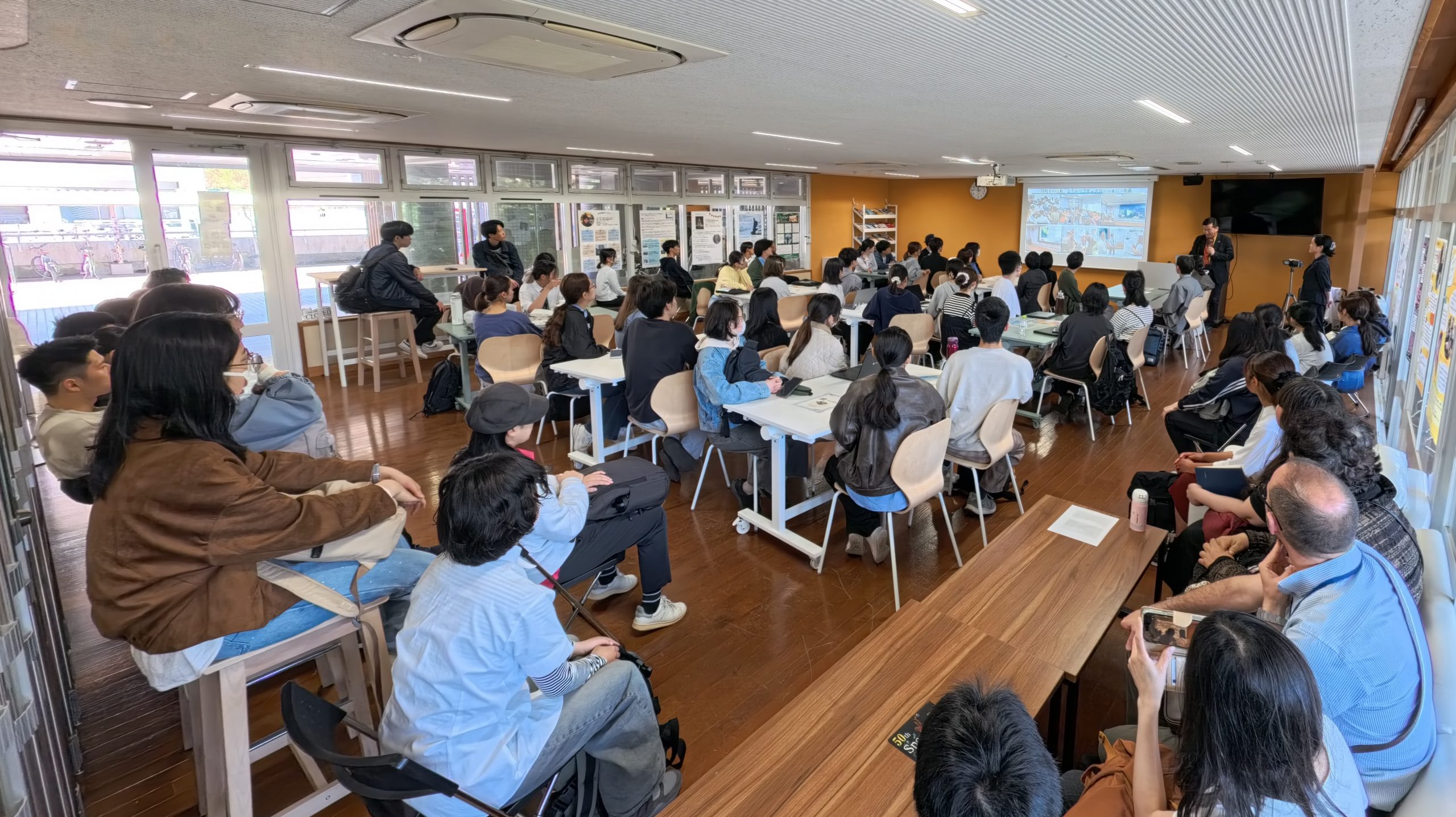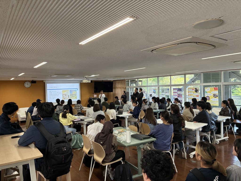 4月16日(木)昼休み、本学ステューデントサポートセンター(SSC)国際交流支援室が実施する「春の留学フェア」の一環として、国内外を舞台に実施される様々な多文化共修の紹介・促進を目的に多文化共修ガイダンスセッションを開催しました。セッションには50名を超える学生が参加し、国際的な学びへの関心の高さがうかがえました。